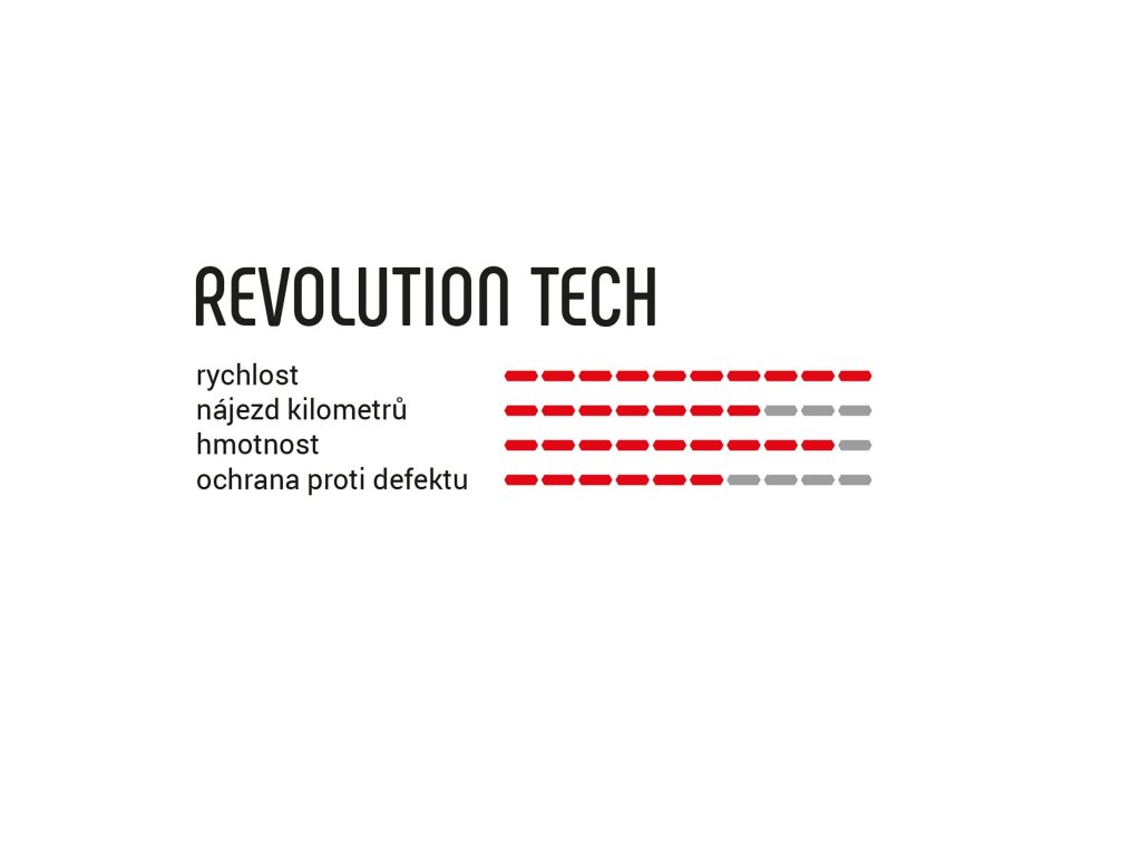 REVOLUTION TECH Vzorek tohoto velmi odolného pláště nabízí ještě nižší valivý odpor, než je tomu u klasických slicků. Zároveň ale dokáže podržet na širokém spektru povrchů - snad jen krom kluzkých kořenů, sněhu a bahna. Plášť splňuje normu ECE-R75 a je tedy dostatečně odolný pro montáž na elektrokola. Velmi odolná konstrukce s přidanou ochranou proti defektu pod běhounem, spolu se špičkovou grafenovou směsí, předurčuje tento plášť pro drsné používání, elektrokola nevyjímaje. Při brázdění silniční džunglí přijde také vhod reflexní bok. Drátová patka. Konstrukce kordu NYLON 33 TPI. Dvojitá ochrana proti defektu pod běhounem. Inovovaná směs Grafen 2.0 poskytuje ještě vyšší odolnost, životnost a přilnavost - zejména za mokra. Reflexní bok.Doplňkové parametry