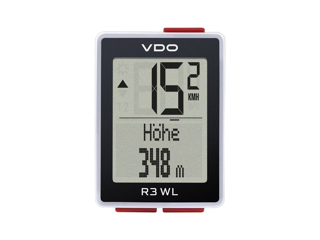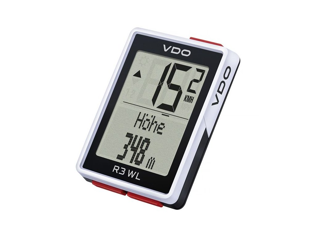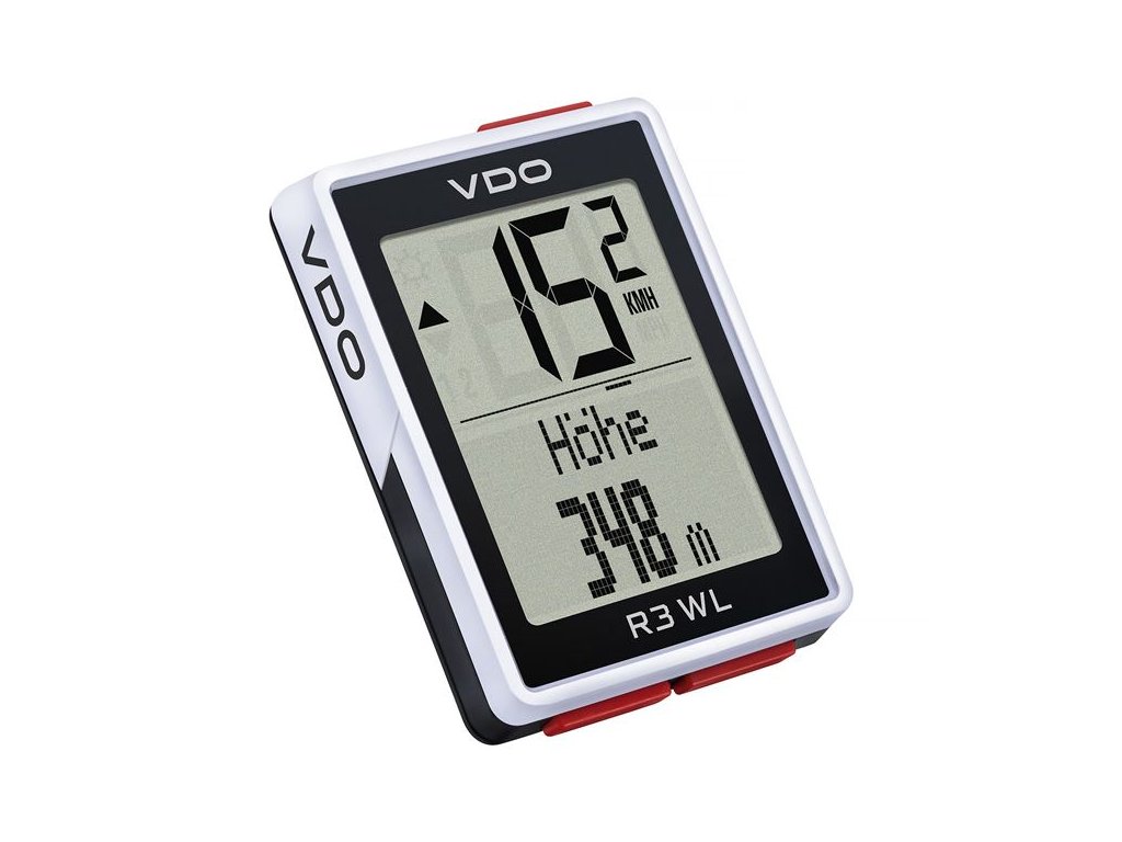 S bezdrátovým computerem VDO R3 WL máte při svých vyjížďkách do hor, při tréninku nebo jen při jízdě do kanceláře vždy přehled o všech důležitých údajích své jízdy. Vodotěsný computer VDO R3 WL zobrazuje okamžitou rychlost, denní a celkovou vzdálenost, celkový a aktuální čas jízdy, hodiny, průměrnou a maximální rychlost, porovnávání okamžité a průměrné rychlosti a teplotu. Navíc má computer integrované barometrické měření nadmořské výšky a lze jej používat na dvou kolech. Dále máte možnost sledovat své osobní statistiky za posledních 12 měsíců. Díky integrovanému podsvícení je displej dobře čitelný i ve tmě. Nastavení obvodu kola je další snadnou záležitostí, protože si můžete vybrat z integrované tabulky plášťů. Držák na řídítka pro vodotěsný computer lze rychle namontovat na kolo pomocí přiložených stahovacích pásků. Computer lze poté snadno vyjmout a uschovat, čímž jej ochráníte před možným odcizením. Bezdrátový přenos dat zajišťuje digitální vysílač, který je umístěn na vidlici kola. Baterie (CR2450) postačí k napájení počítače po dobu delší než dva roky. Spárováním computeru VDO R3WL s volitelně dostupným vysílačem kadence si máte možnost neustále hlídat svou kadenci.