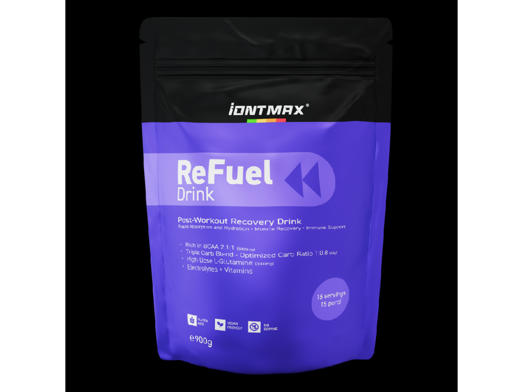 ReFuel Drink – Rychlá regenerace a hydratace po fyzické zátěžiRegenerační řešení určené k použití do 20–30 minut po fyzické zátěži. Obsahuje fermentované BCAA 2:1:1 a L-glutamin pro ochranu a obnovu svalů, rychlé doplnění sacharidů a rovnováhu elektrolytů. Optimalizovaný poměr glukózy, fruktózy a sacharózy (1:0,8) zajišťuje efektivní dodání energie. Obohaceno o kompletní spektrum vitamínů a minerálů pro snížení únavy a podporu imunity.