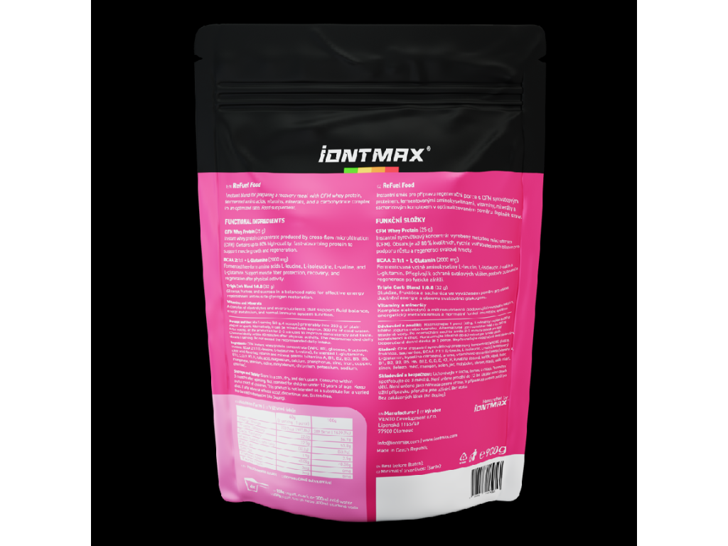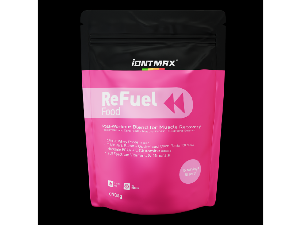 ReFuel Food – výživa pro svalovou regeneraci Instantní směs navržená pro regeneraci po výkonu s obsahem CFM syrovátkového proteinu (25 g), fermentovaných BCAA a L-glutaminu (2000 mg), sacharidovým komplexem a plným spektrem vitamínů a minerálů. Vhodné ke smíchání s jogurtem, tvarohem nebo vodou. Podporuje růst svalové hmoty, regeneraci a imunitní systém.