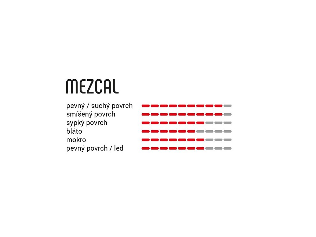 MEZCALVelmi rychlý a univerzální XC/TRAIL plášť. Střední část vzorku tvoří na sebe téměř navazující knoby pro maximální rychlost a nízký valivý odpor. Jistotu v zatáčkách dodává dostatečně ostrý a vysoký vzorek na okraji běhounu, kdy je navíc každý knob opatřen lamelou pro vyšší přilnavost. Mnoho výrazných hran je pak schopno udržet adhezi i ve stoupání, nebo při agresivním brzdění. Vzhledem k tomu o jak rychlý plášť se jedná, nabízí nečekanou jistotu v náročnějším terénu a podmínkách.