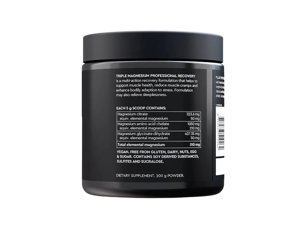 Většina sportovců někdy užívala hořčík - často kvůli podpoře spánku, regeneraci svalů nebo kvůli křečím, ale téměř všichni nenašli žádný znatelný přínos, a proto přestali. Problém je v tom, že tito sportovci používají produkty, které pro ně nejsou určeny. Farmaceutické společnosti se vždy zaměřovaly na masovou populaci se sedavým zaměstnáním, a tak "formy" hořčíku a síla v produktech nijak neřeší potřebné hladiny vytrvalostních sportovců. Řada TRIPLE MAGNESIUM od PILLAR byla cíleně sestavena tak, aby podporovala spánek a regeneraci svalů vytrvalostních sportovců. S využitím předních výzkumů v oblasti sportovní vědy byl sestaven výběr nejlépe biologicky dostupných forem hořčíku v přiměřeně vysoké potenci. Zatímco farmaceutický průmysl se zaměřuje na populaci se sedavým zaměstnáním, PILLAR bezvýhradně podporuje výkonnostní výsledky.