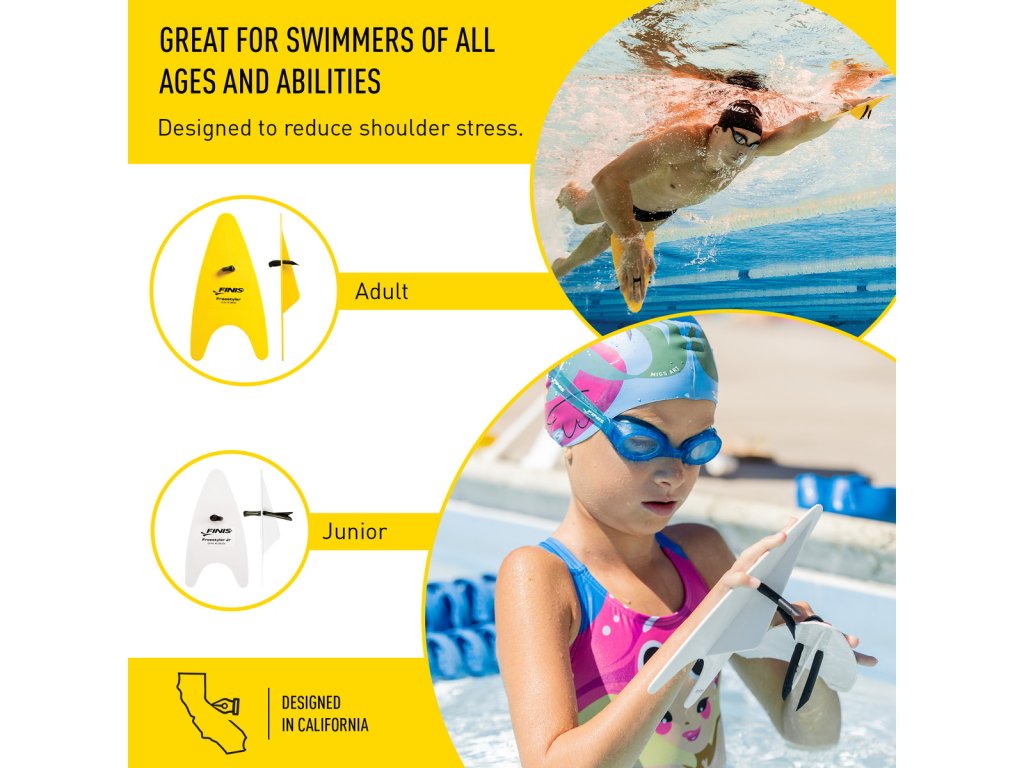 - Patentovaná technologie ručních pádel učí správnou freestylovou techniku s okamžitými výsledky. S jejich unikátním tvarem a designem mohou plavci zlepšovat více technických aspektů při tréninku freestylových záběrů.