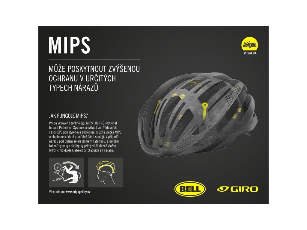 MIPS (Multi-Directional Impact Protection System) poskytuje zvýšenou ochranu proti působení rotačních sil na hlavu. Více na www.MIPSprilby.cz