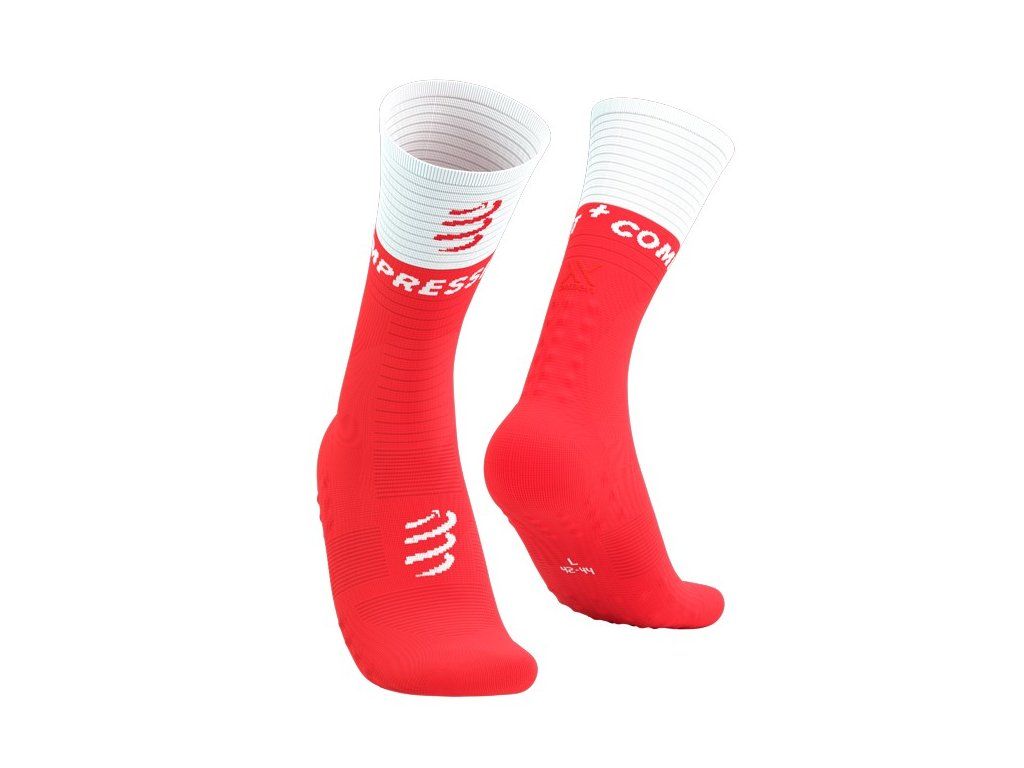 Tato nová generace kompresních běžeckých ponožek se střihem do půlky lýtek od značky COMPRESSPORT, je křížencem kompresních podkolenek a nízkých běžeckých ponožek. Tyto ponožky přicházejí na trh s novinkami ve využitých technologiích. Díky těmto ponožkám využijete benefity plynoucí z komprese, jakými jsou například zrychlení žilního průtoku krve nebo rychlejší přívod kyslíku do svalů. Kompresní struktura je navržena do poloviny lýtek, kde tlumí nežádoucí otřesy, čímž se budou Vaše nohy cítit daleko lehčeji. Výstupky 3D Dots v oblasti chodidla vám zajistí, kromě odvodu vlhkosti a potu, maximální grip k vašim botám.